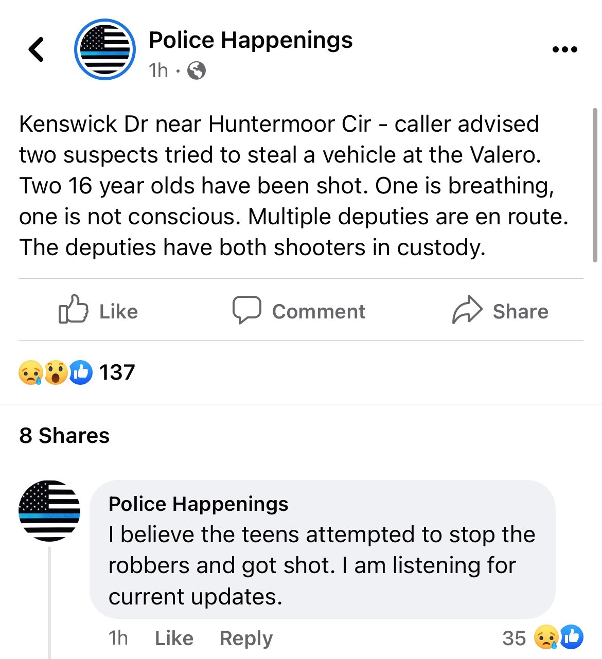 1 of the teens has passed away. The other is in critical condition. I hope the other teen survives.