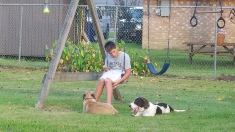 He's getting along good with our other male dog, Fred. Although Feed is a little confused as to went he still has his family jewels! Lol Our female maltese isn't too sure about him yet. She just hides behind the couch and whines when he comes inside.