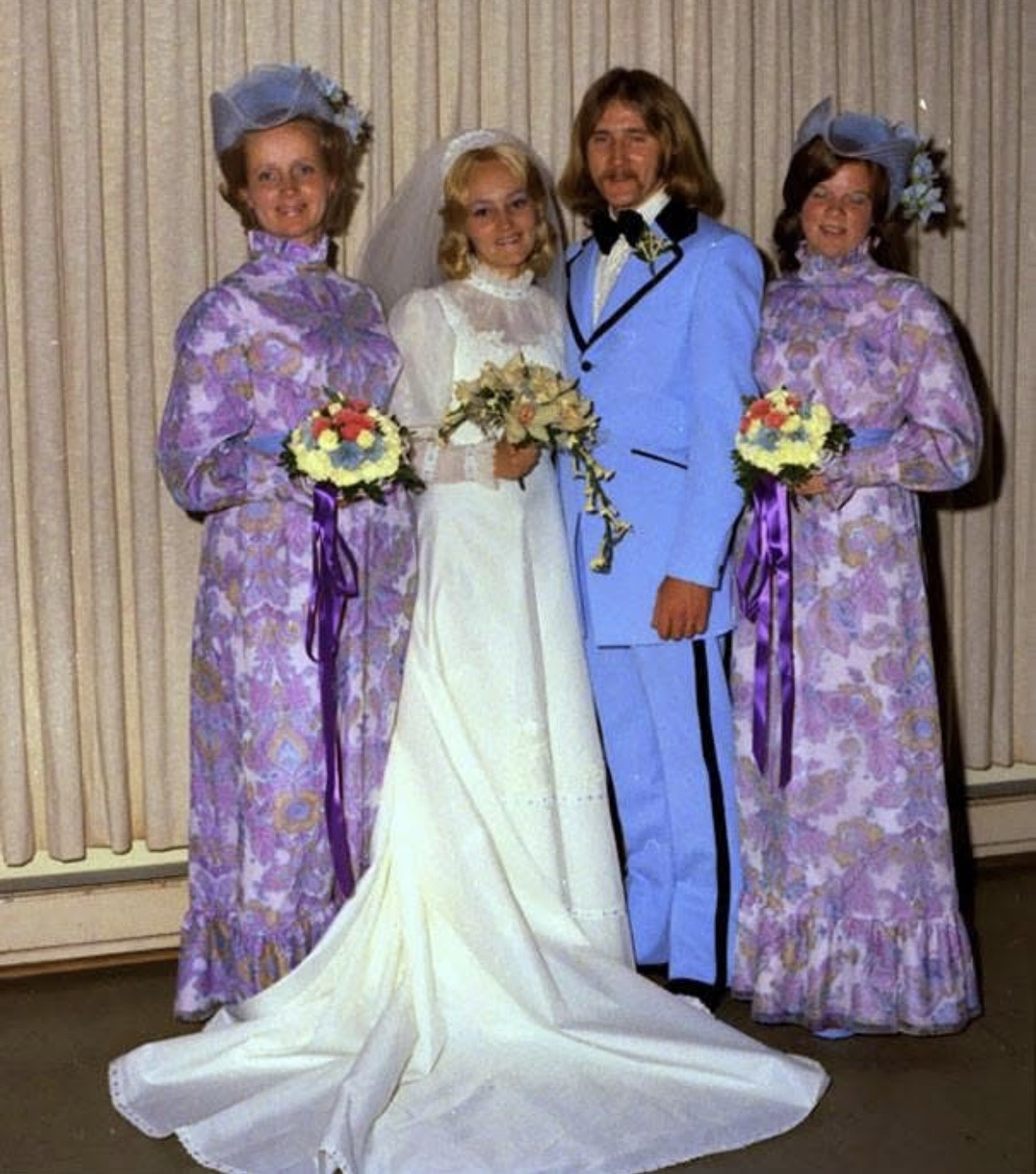 I think I remember my older brother wearing a powder blue tux for his wedding when he was 17 years old. I was 7 and probably thought it was pretty. 😂