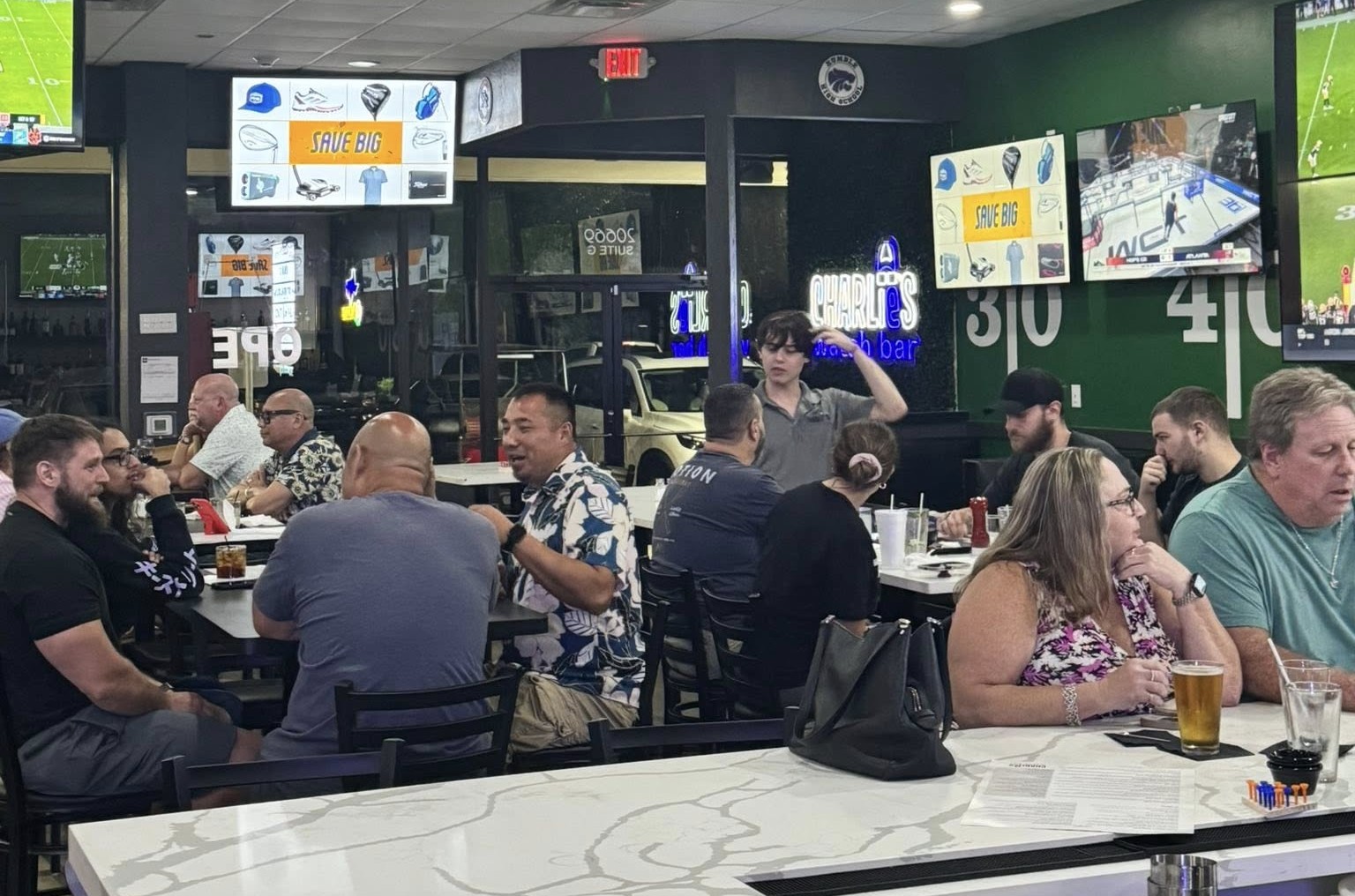 Charlie’s Watch Bar was built for fans of the game – and the people who love them. Whether you’re cheering on your team in the final seconds or just here for the wings and good company, there’s a seat for you at Charlie’s. With over 30 high-definition TVs broadcasting everything from pro matchups to local high school games, we make sure you never miss a moment.
