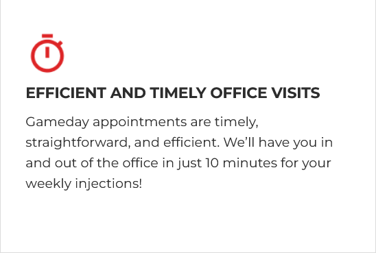 If you have low T, we offer customized testosterone replacement therapy (TRT) gameplans suited to your specific needs. We are here to help get back on track to feeling and functioning your best.