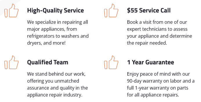 Enjoy peace of mind with our 90-day warranty on labor and a full 1-year warranty on parts for all appliance repairs. |