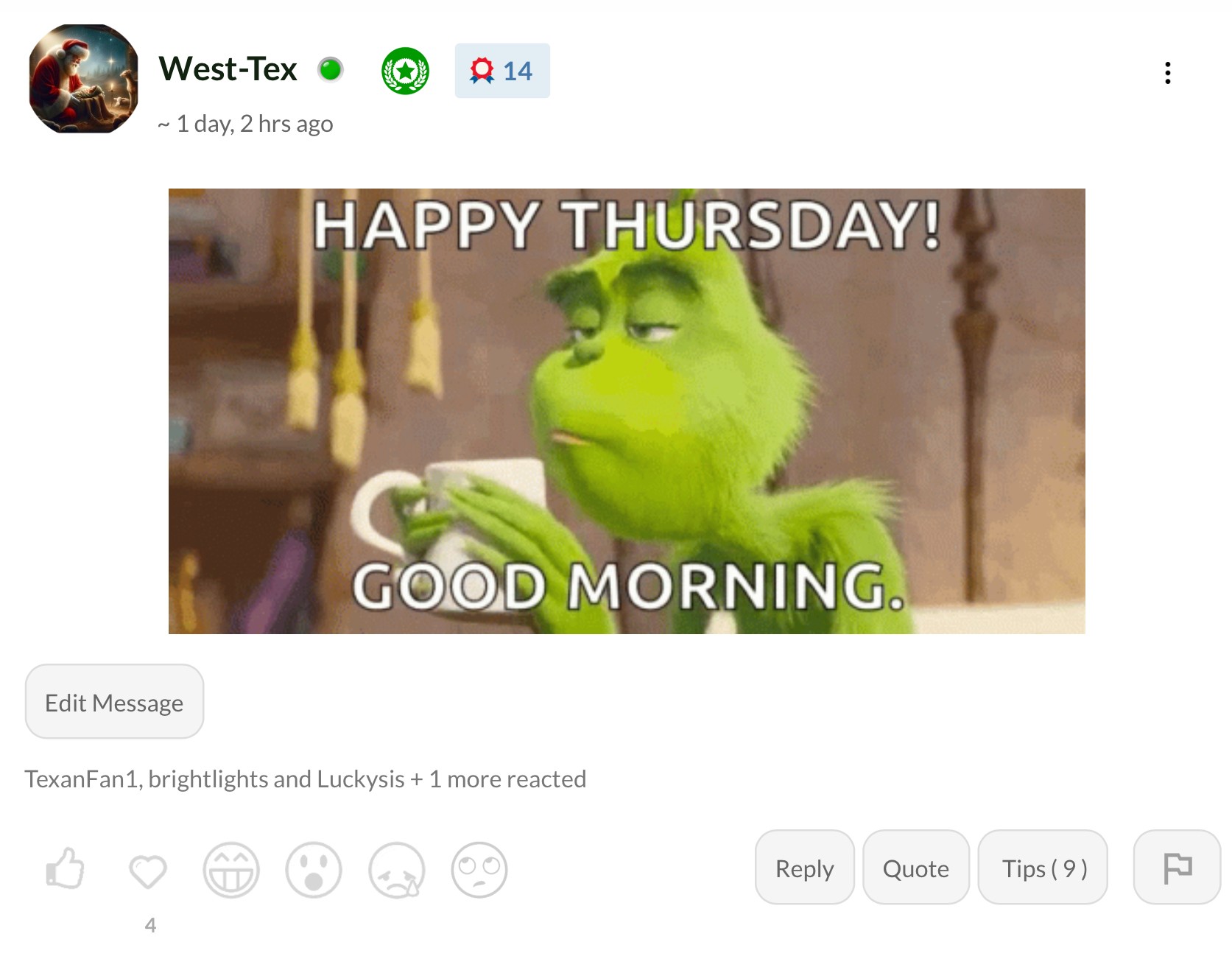 TexanFan1, brightlights and Luckysis + 1 more reacted