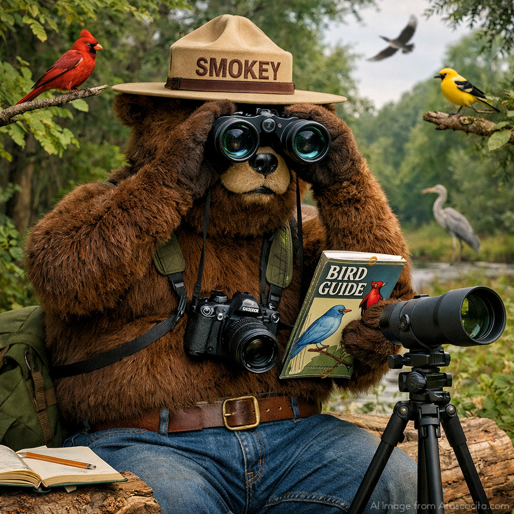 Y'all look at the picture of me with the binoculars. I think that's a third hand holding the bird guide Emoticon