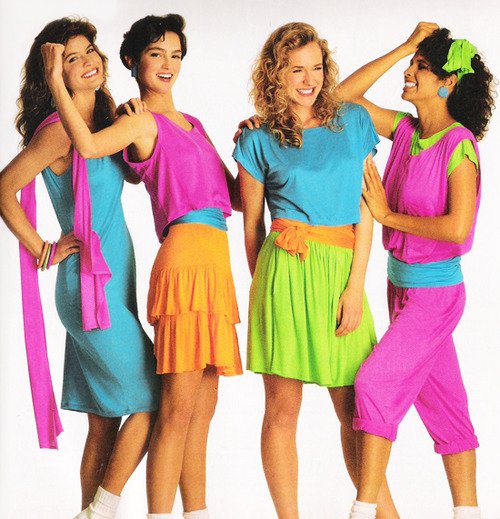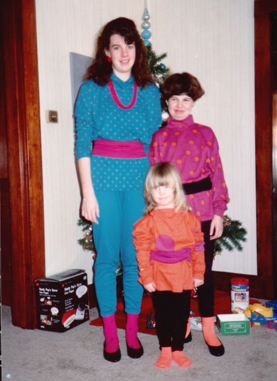 But remember the units that were the long t-shirt and then kinda legging like pants but were loose..and then had puff paint designs on the leg and tben the shirt? We did it with jogging suits also..lord we would go to the market district in Dallas and buy 20 sets, tax free to keep and give as gifts . Themes were important Christmas, Fall eyc..oh i have to find a picture