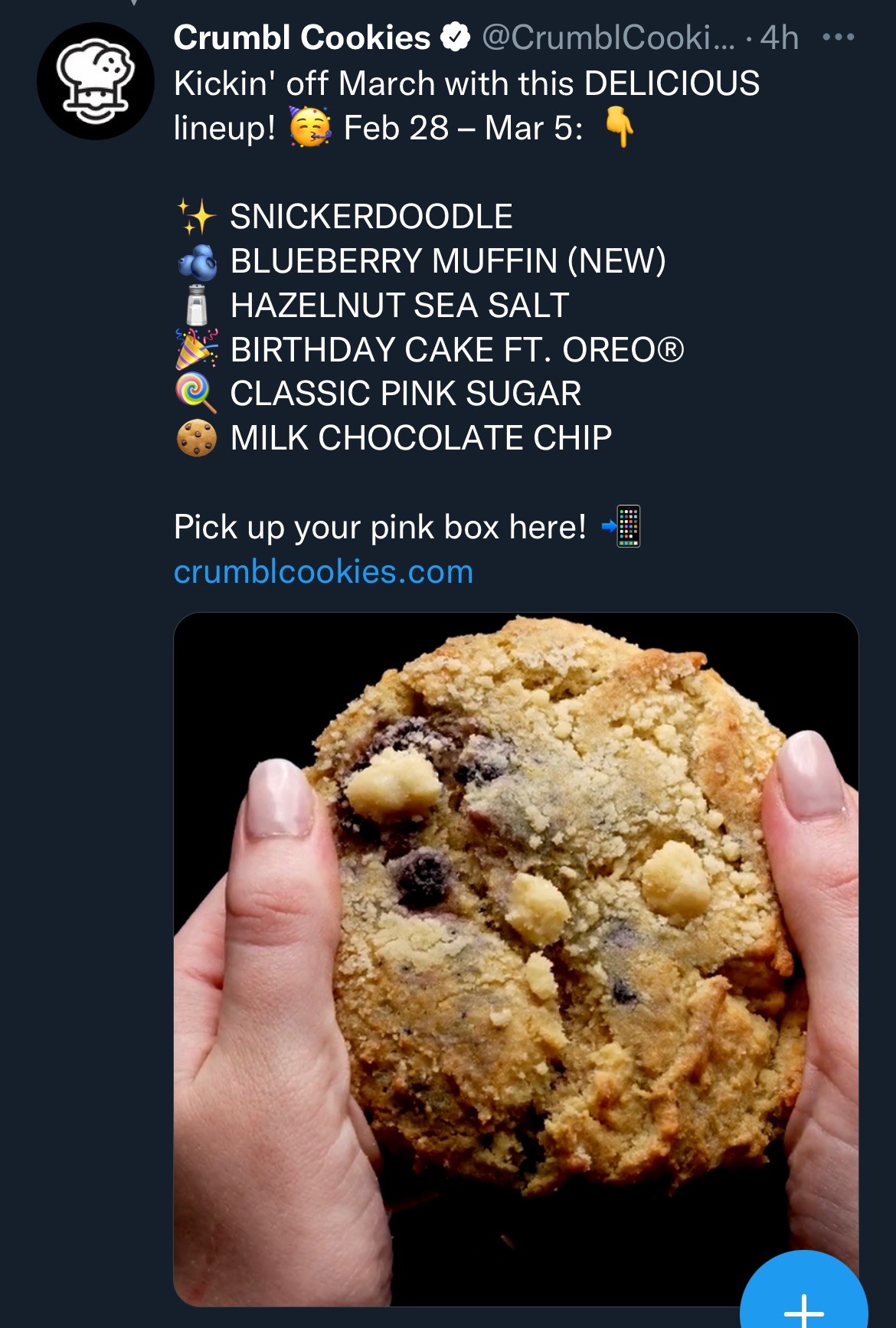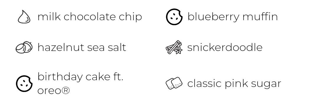 @brightlights : We got Chocolate chip, the cookie monster one, the Reese's PB one, and the cornbread cookie.