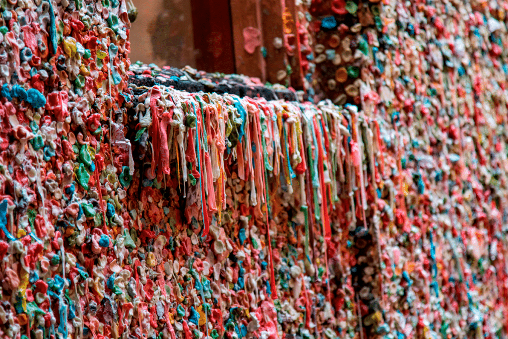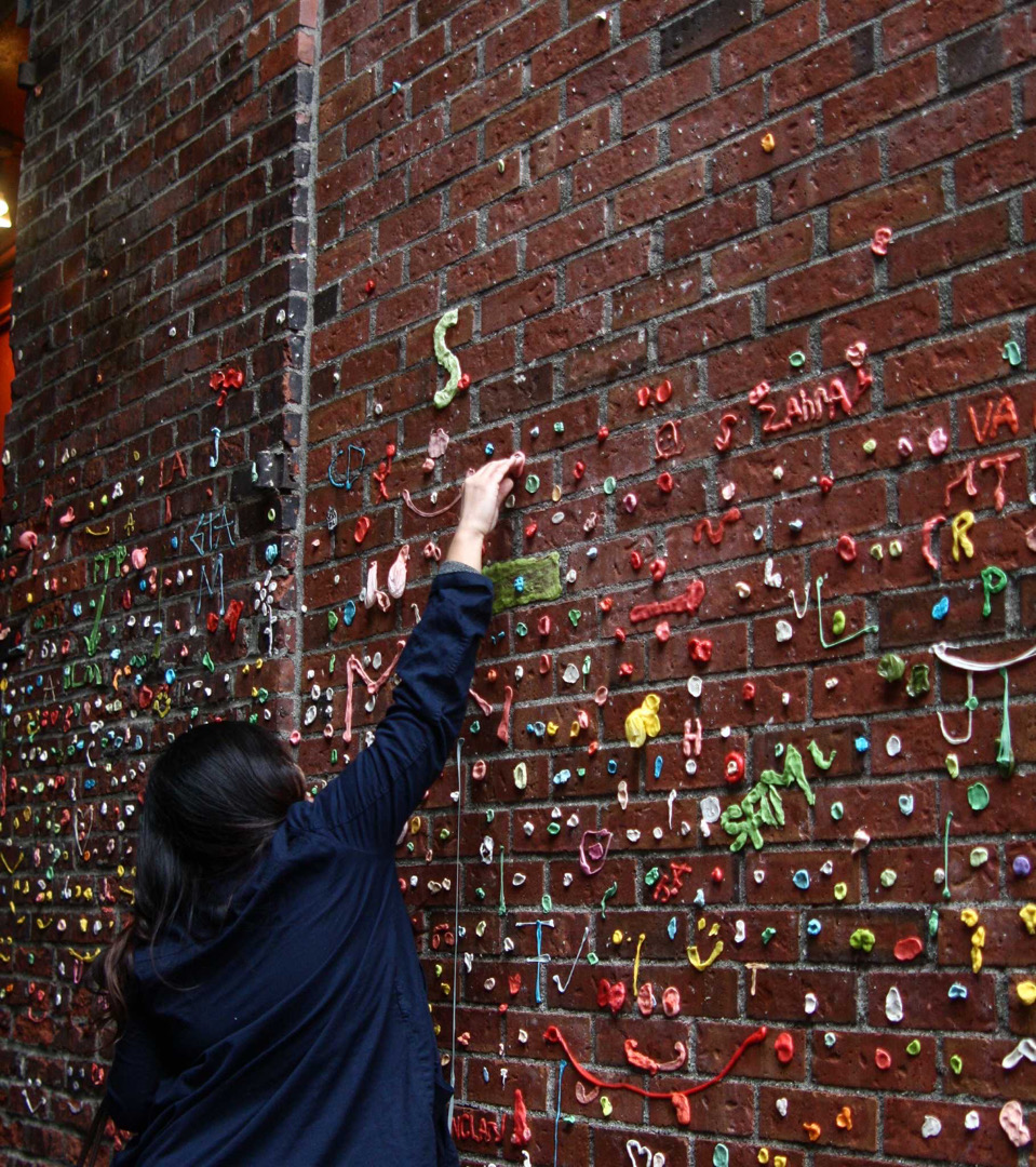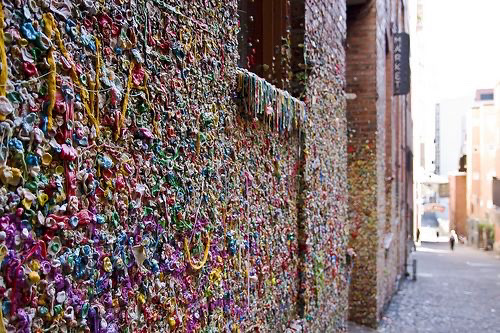The gum wall in Seattle. I didn't know this existed. They have cleaned it once and it started all over again.