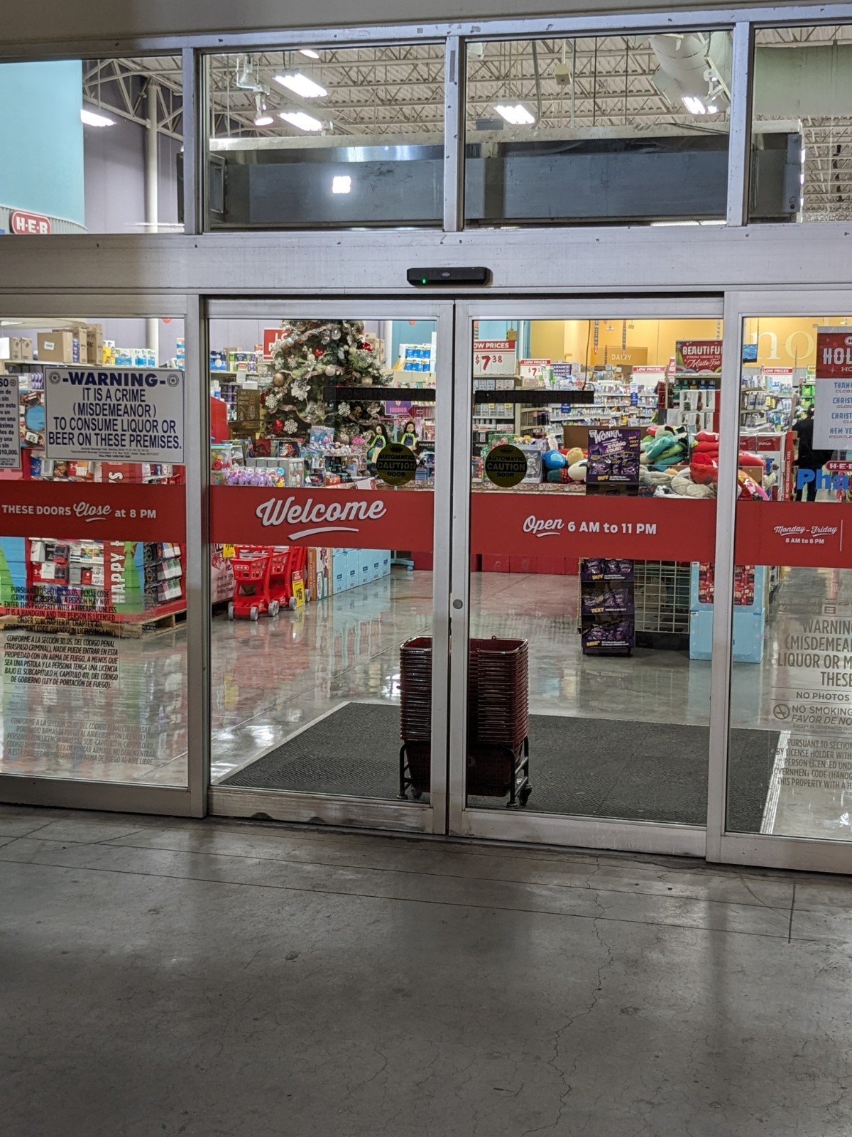 Were the other entrances open? Might be because they have nobody back there near the Pharmacy at that time and high dollar items right there. Our Kroger has the left hand entrance closed at 8 nightly.