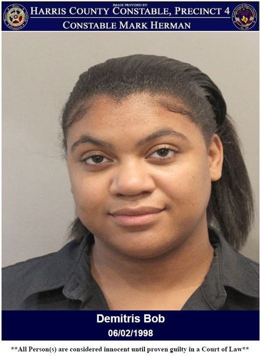 "Demitris Bob was arrested and booked into the Harris County Jail, charged with Child Abandonment. Her bond and court information have not been set at this time." - Constable Mark Herman