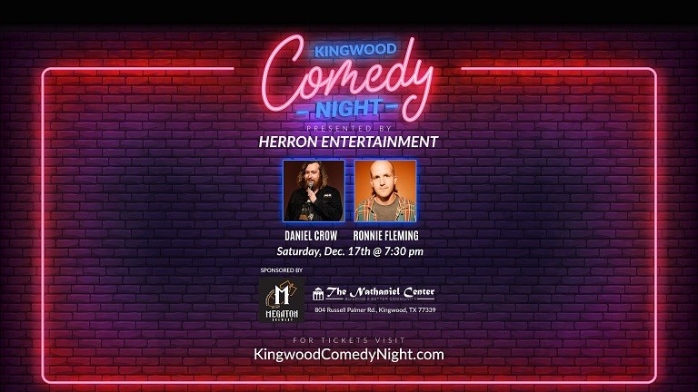 The Nathaniel Center is rolling out a series of Comedy Shows. Join them on December 17th at 7:30pm for their December edition of Kingwood Comedy Night with a Double Headliner event for this Christmas Season. Daniel Crow and Ronnie Fleming will take the stage to help ease your holiday anxiety with some delightful stand-up comedy! Grab your tickets today at: www.kingwoodcomedynight.com
