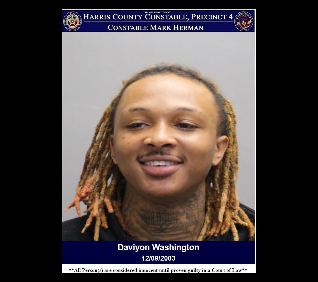 "Daviyon Washington was arrested and booked into the Harris County Jail for the open warrant and charged with Violation of Bond Conditions. His bond and court information have not been set at this time." - Constable Mark Herman