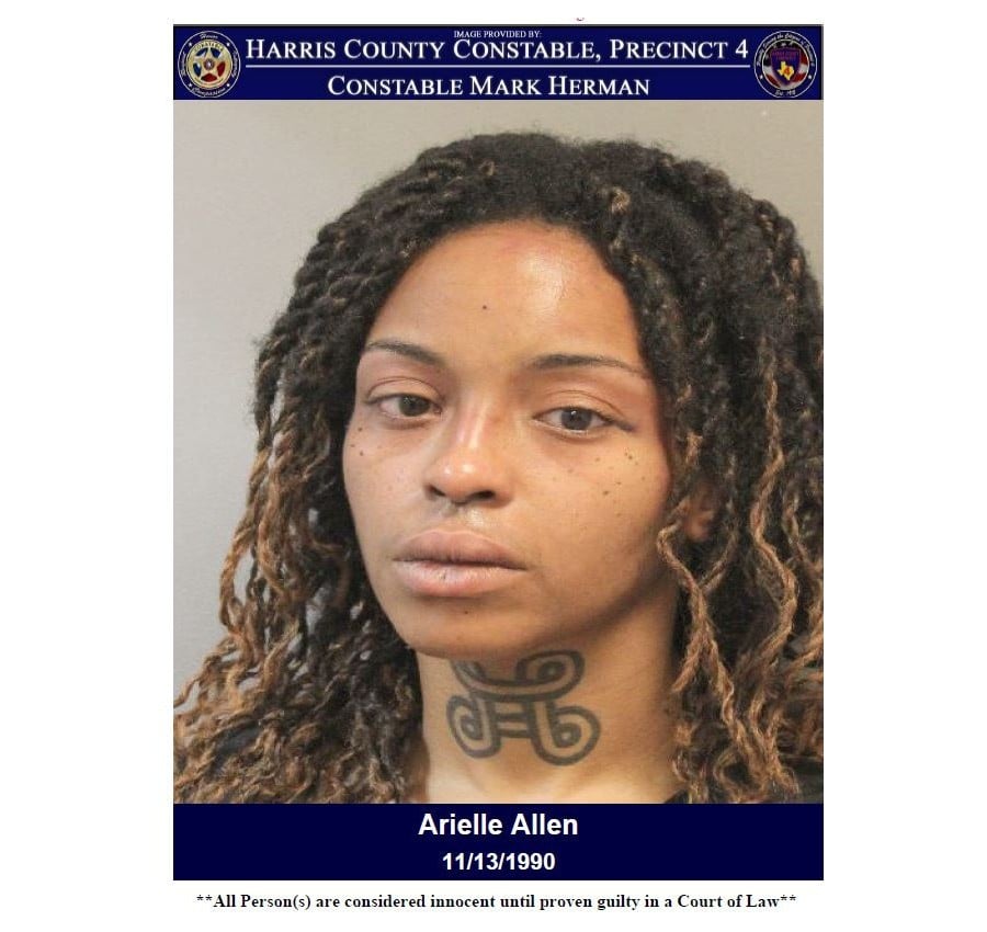 "Arielle Allen was arrested and booked into the Harris County Jail, charged with Child Endangerment. Her bond was set at $2,500.00 out of the 262nd District Court." - Constable Mark Herman
