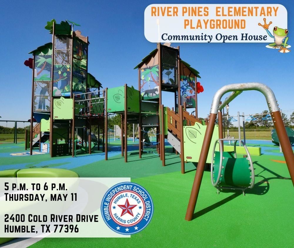 Humble ISD invites families to a Playground Dedication and Open House from 5 to 6 p.m., Thursday, May 11, at River Pines Elementary School, 2400 Cold River Drive.