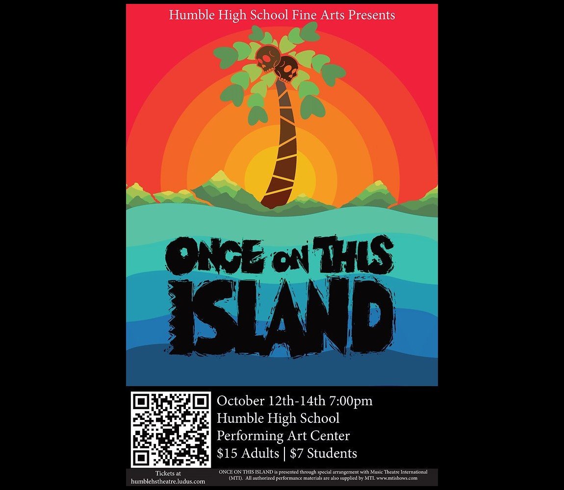 Dive into the enchanting world of "Once on This Island"! Join the Humble High School Wildcat Theater on a captivating journey as a young girl discovers love in a world divided by prejudice. Can love triumph over death? Find out on Oct 12, 13, and 14 at 7:00 PM. Secure your tickets at the Box Office today!