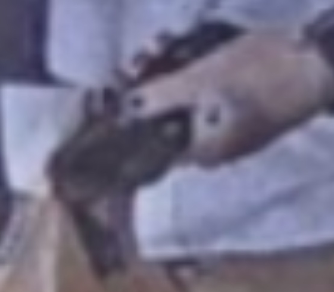 What's with his left hand? It's too grainy to see what exactly is going on there.