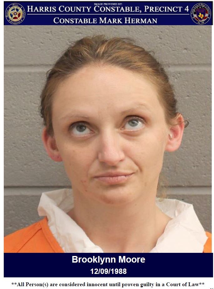 "Brooklynn Moore was arrested and booked into the Harris County Jail for the open warrant. Her bond was set at $102.00 out of County Court 6."- Constable Mark Herman