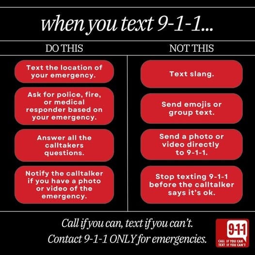 Text-to-9-1-1 can be a lifesaver when calling 9-1-1 is not an option, but knowing the do’s and don’ts is just as important to ensure help reaches you quickly in a life-threatening emergency. Check out these helpful tips when texting 9-1-1.