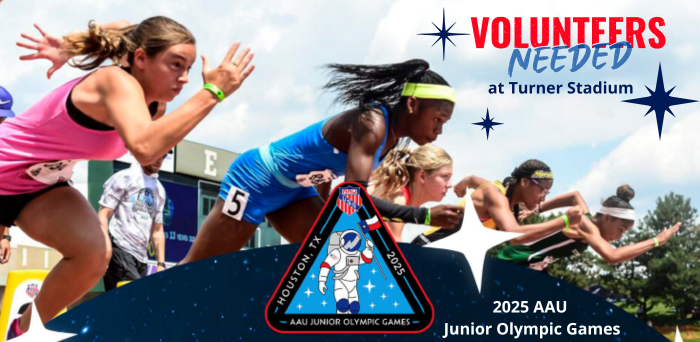 Houston Sports Authority is seeking volunteers for the AAU Junior Olympic Games July 23 - August 2, at Turner Stadium. Volunteers must be 16 or older, and no special skills or experience are needed. Volunteers are required to register for a minimum of two shifts. This is a great opportunity for high school students!