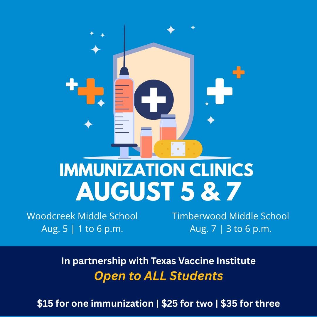 The Texas Vaccine Institute will offer two in-district immunization clinics, open to ALL students.