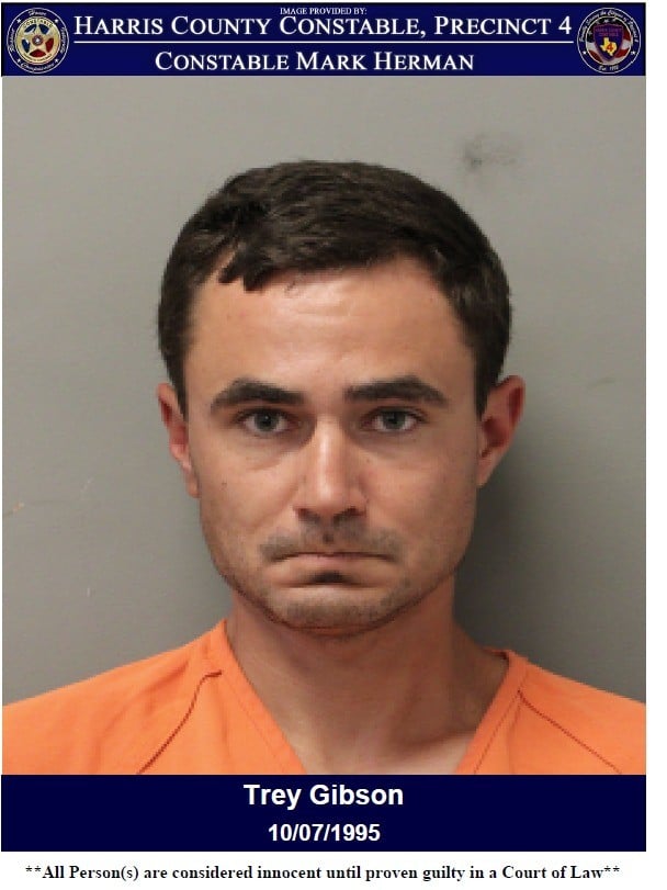Trey Gibson was arrested and charged with Terroristic Threat Against a Public Servant. He was booked into the Harris County Jail with bond set at $15,000 by the 495th District Court.