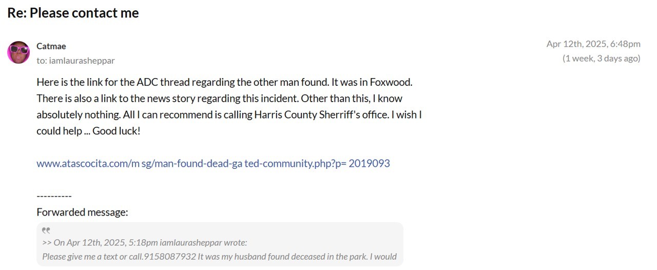 @iamlaurasheppar : You need to take my post off Facebook. I did NOT say it was the second time it happened in the at park. The message I sent you the other day said it was in Foxwood.