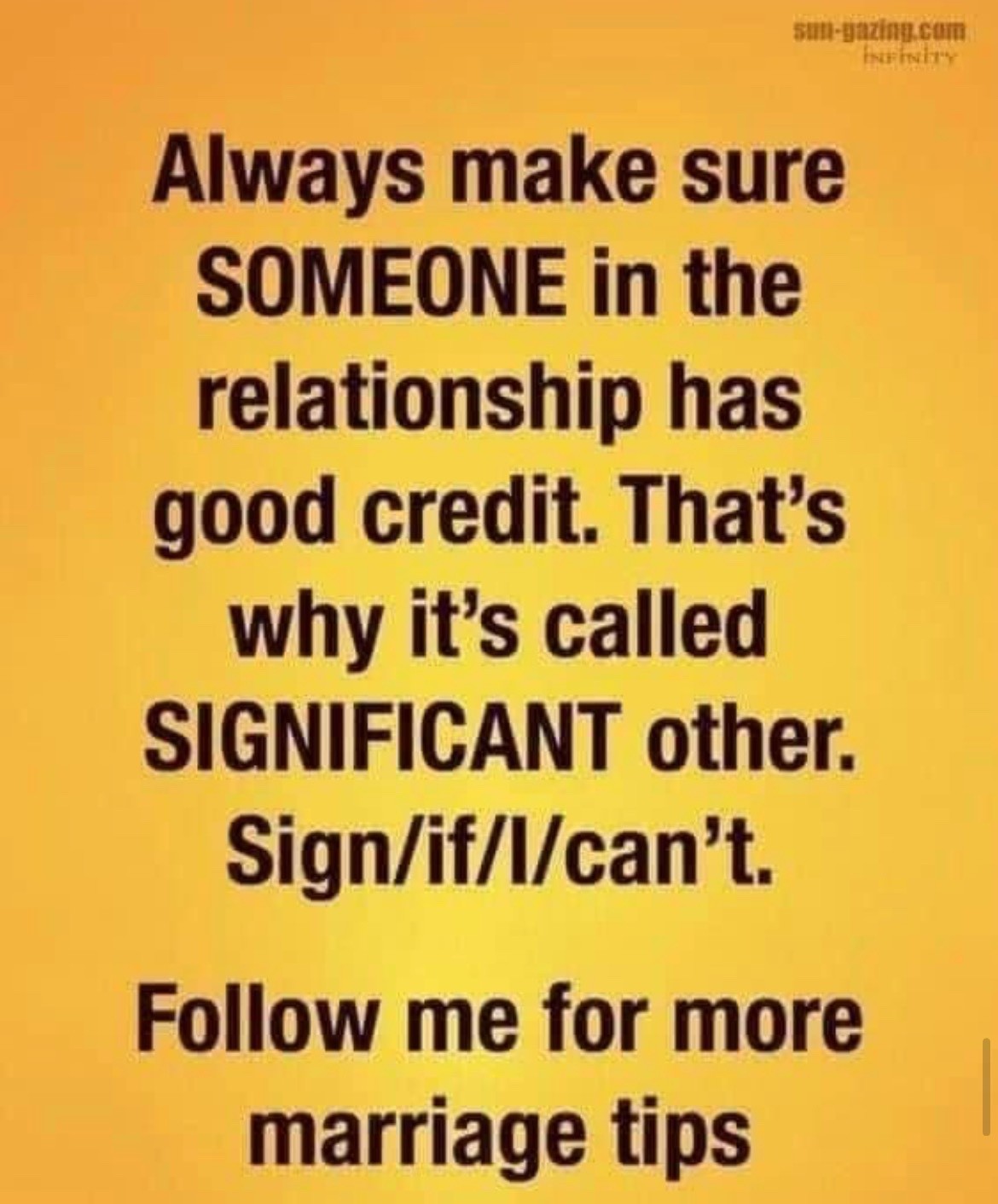 Marriage Tip: Ensure Someone in the Relationship Has Good Credit, According to Floyd on Sun-Gazing.com INFINITY