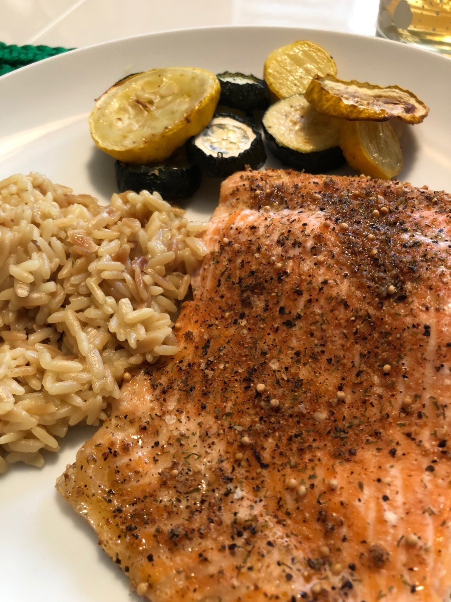 Steelhead trout What are you having for dinner tonight? It is Sunday so that usually means seafood night. I am making Steelhead trout, roasted yellow squash and zucchini and Rice pilaf. It is healthy and delicious.